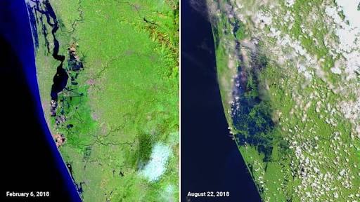 For the past few days, over a week ago Kerala faced heavy rain and huge flood which caused massive destruction.Given above is the picture released by NASA showing the images of Kerala before flood and at the time of flood . It was quite unexpected that Kerala haven't faced with this much deluge since the formation of the state from 1951.