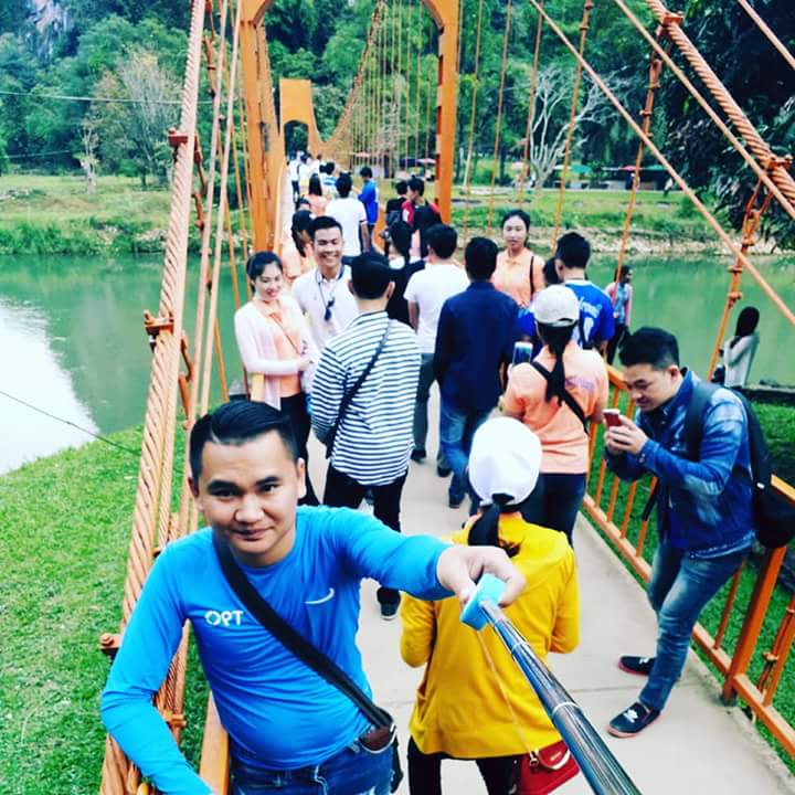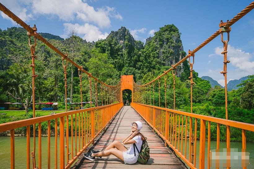 ຈາກນັ້ນໃຫ້ຍ່າງຂ້າມຂົວສີສົ້ມຂ້າມແມ່ນ້ຳຊອງເຂົ້າໄປ ກ່ອນທີ່ຈະເຂົ້າໄປໃນຖ້ຳຈັງເຮົາສາມາດຖ່າຍຮູບງາມໆຢູ່ທີ່ຂົວສີສົ້ມໄດ້ ເຊີ່ງເປັນຈຸດນິຍົມຂອງຫລາຍໆ ຄົນທີ່ມັກຖ່າຍຮູບ.