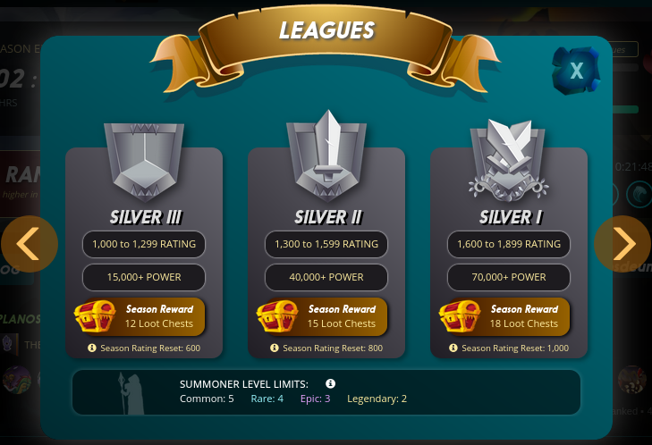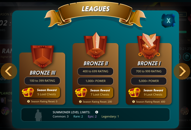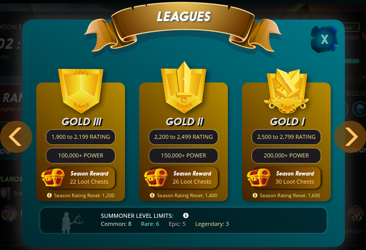 En este cuadro se puede ver las diferentes ligas con el POWER que se necesita para estar en dicha liga.