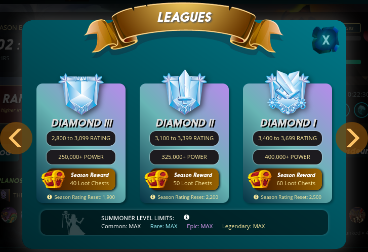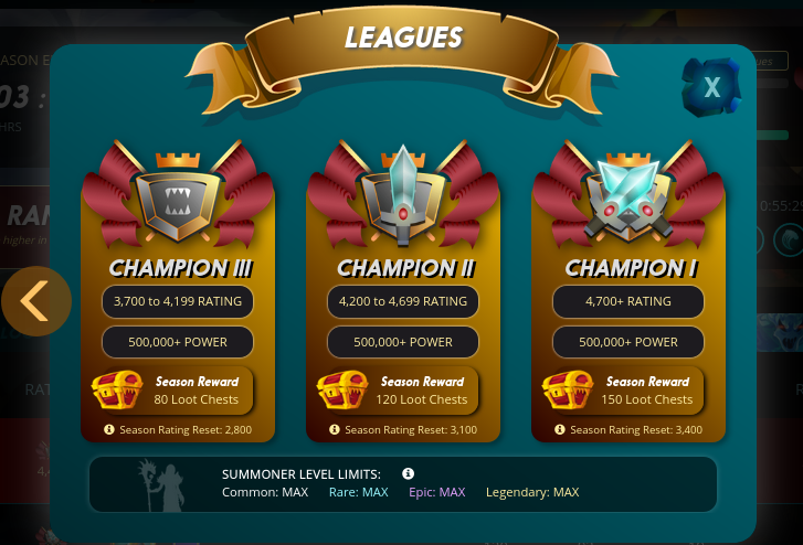 En mi caso tengo de POWER: 1736426, así que puedo estar jugando desde Champion III hasta Champion I, ya que paso el mínimo requerido que es 500000 de POWER para esta liga.
