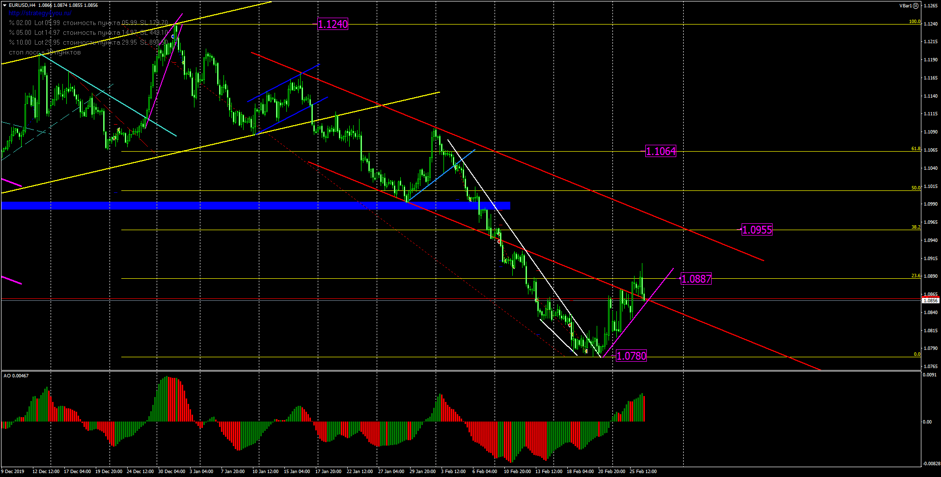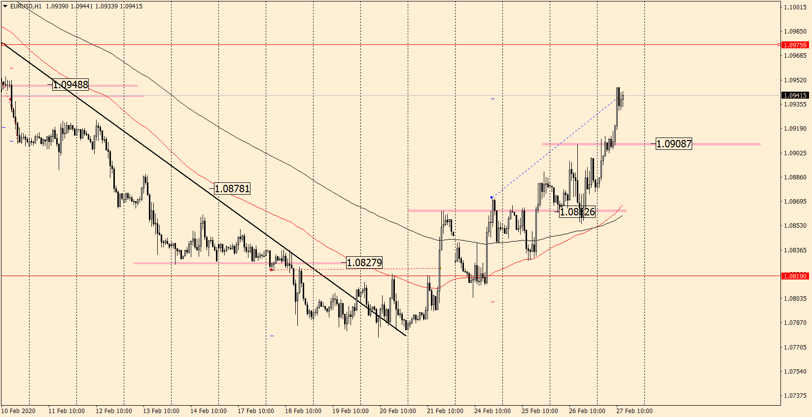 24 февраля мы покупали актив в направление бычьей тенденции на пробое уровня горизонта 1.0862. Сегодня сделка закрывается по профиту.