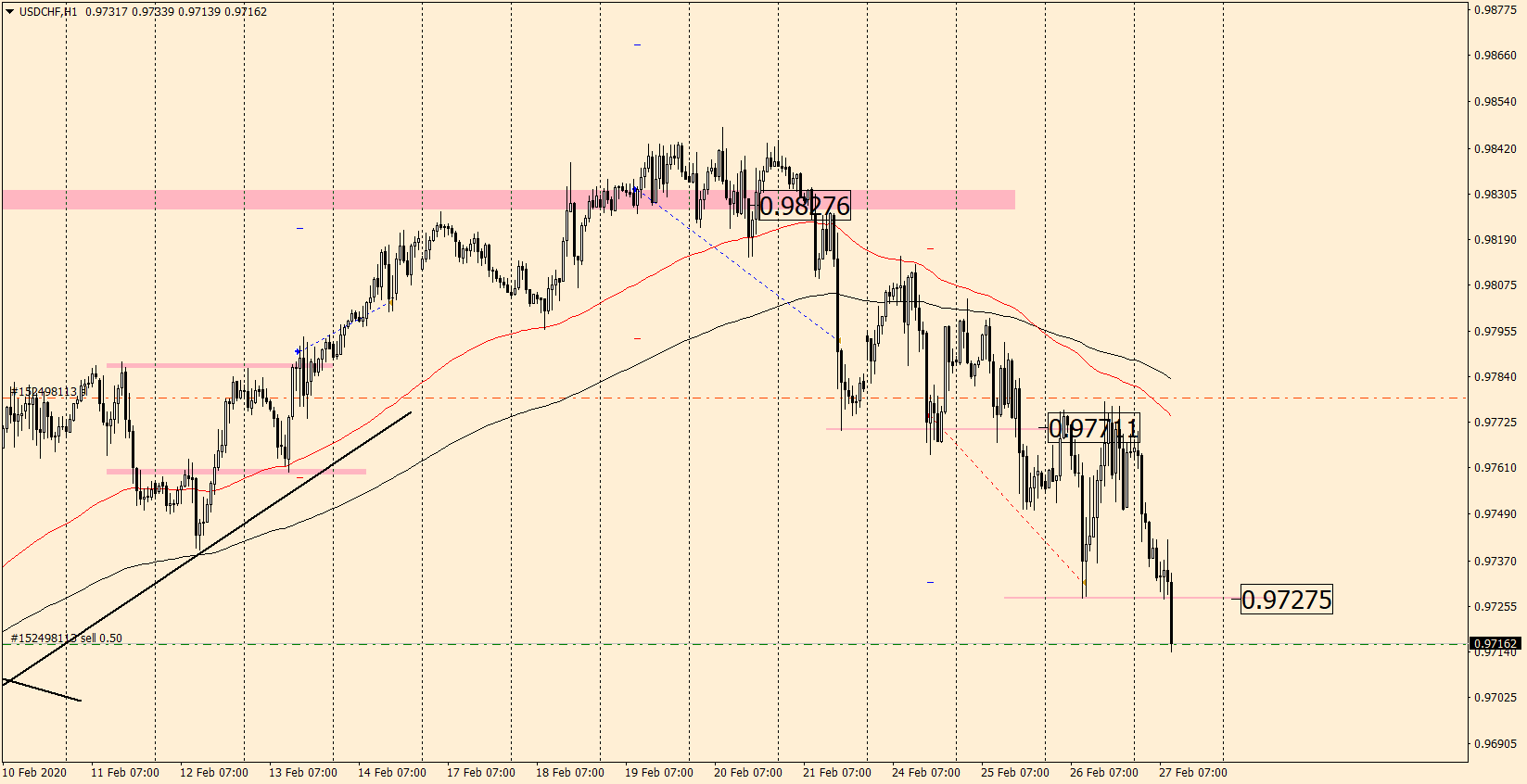 По валютной паре цена упала. Падение данное идет к поддержке на 0.9700. Если от него будет коррекция, то продаем пару и ждем к отметке на уровне 0.9660.