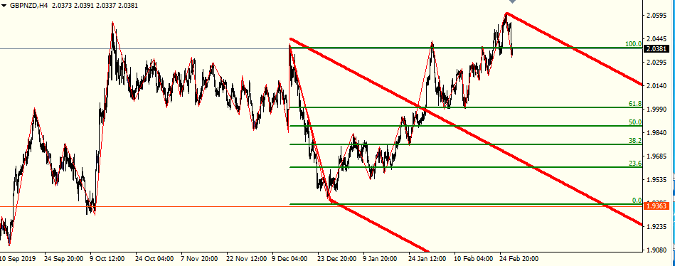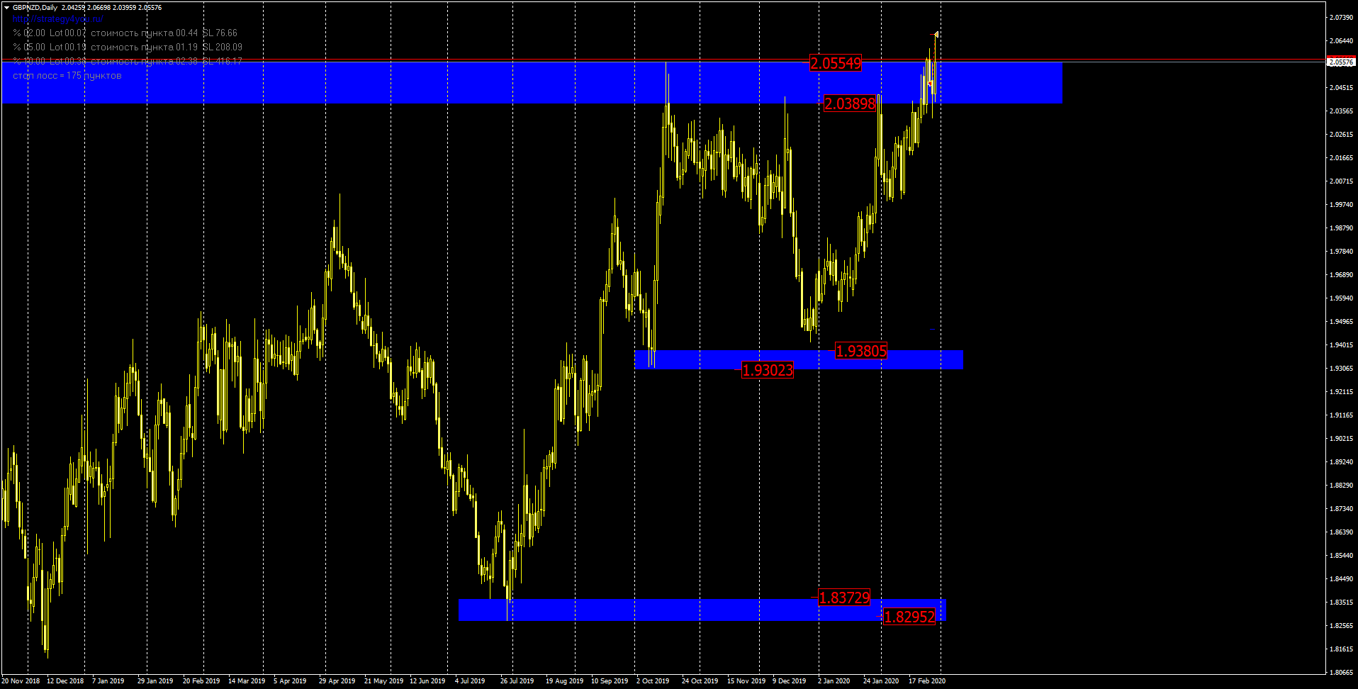 От области сопротивления на отметках 2.0389 и 2.0554 мы инструмент продаем и получаем стоп лосс. Цена пока в пределах области. Ждем повторный сигнал в продажу.