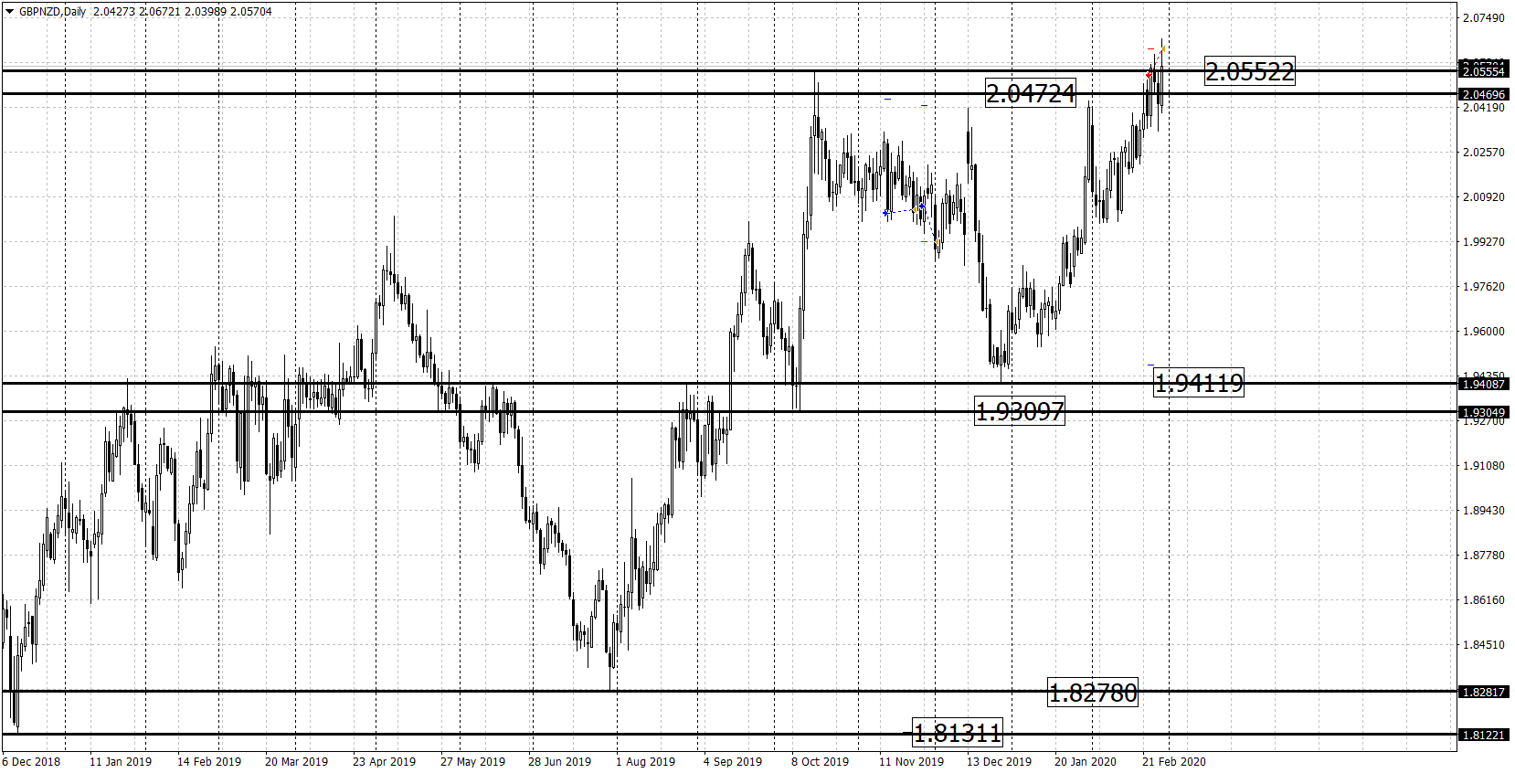 Продажа актива от недельного сопротивления 2.0552 не приносит положительного результата. Сделка приносит убыток.