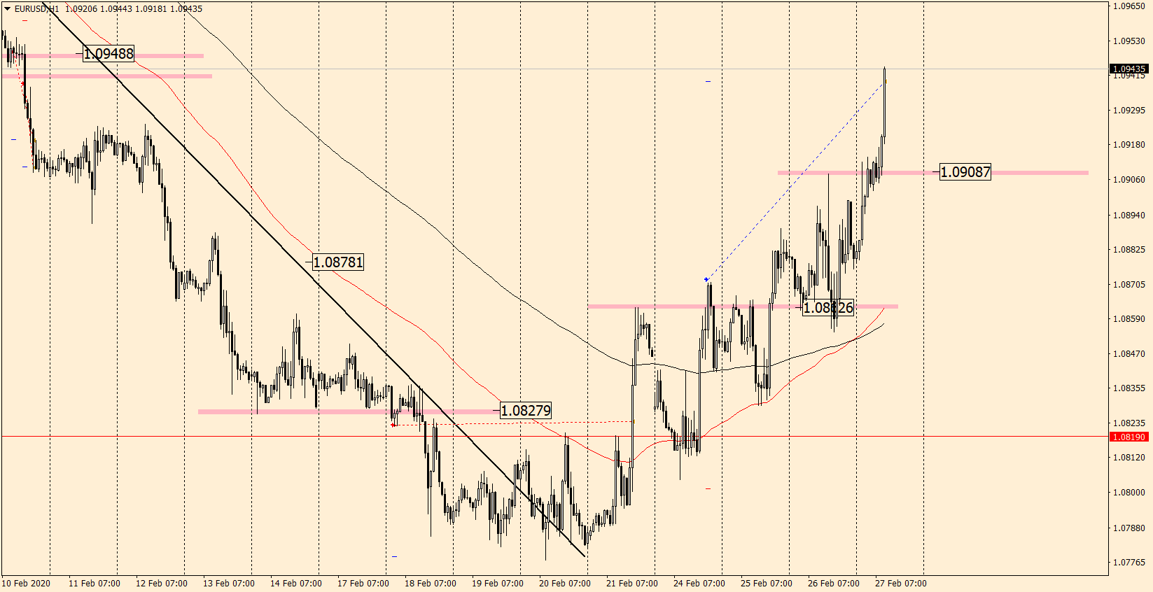 Несколько дней назад мы рекомендовали покупать данный актив, так как ждали продолжение более глубокой корреции. Какие для этого были предпосылки? Первая это импульсный пробой ЕМА 100 и 200 и закрепление котировок выше данных скользящих средних. Вторая - пробитие трендовой наклонной линии. Третья - пробитие уровня горизонта сигнального 1.0862. Сегодня рынок пробивает максимум вчерашнего торгового дня 1.0908 и сделка закрывается с прибылью. Оптимальный вариант работы по данному активу заключается в том, чтобы дождаться откат и входить в сторону бычьей тенденции после формирования сетапов продолжения тренда.