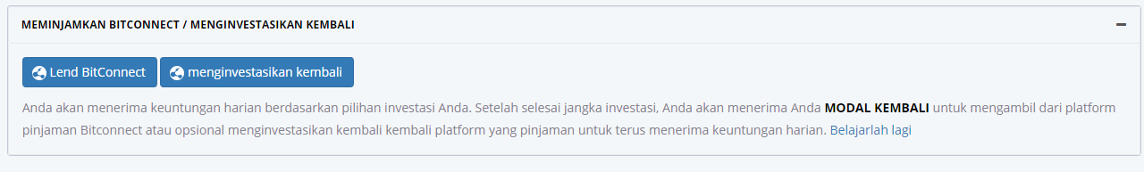 Setelah proses ini selesai, anda bisa meminjamkan mata uang USD sesuai dengan nilai tukar mata uang Bitconnect hari itu.