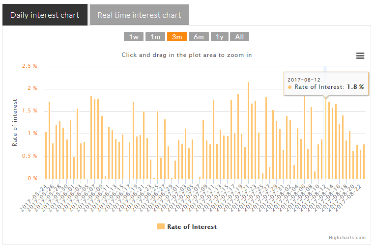 Berikut ini adalah skema grafik sejarah persentasi bunga variabel di www.bitconnect.co.id hari ini (23 Agustus 2017):