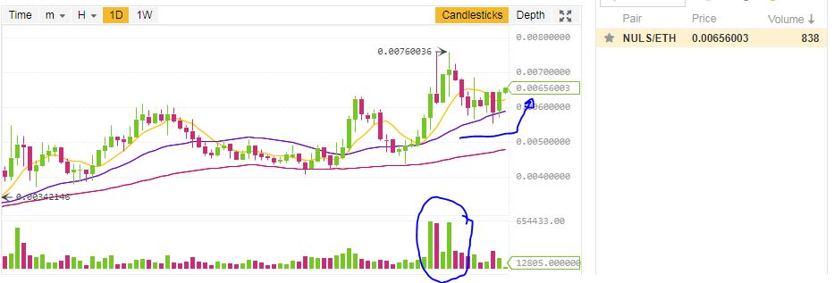 The chart for the day is for NULS which rose 11%. The daily chart shows price now recovering from the pump and dump of two weeks ago.