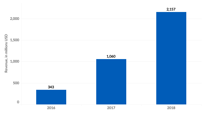 The company shows impressive growth in revenue in recent years, with a 209% increase in 2017 and 103% in 2018.