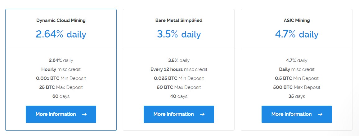 Plan 1 : ลงทุนขั้นต่ำ 0.001 BTC (212 บาทโดยประมาณ) ปันผล 2.64%/วัน จ่ายปันผลให้ทุกชม. ลงทุน 0.001 BTC ปันผล 0.0000264 BTC ตก 5-6 บาท ต่อ วัน จำนวน 60 วัน คืนทุนโดยประมาณ 40 วัน