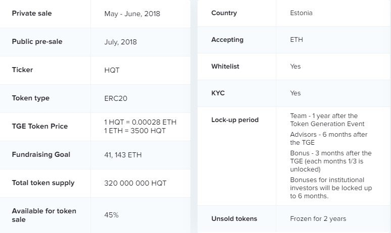 Total token supply : 320 000 000 HQT