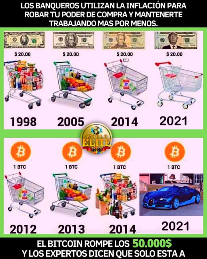 Observaste detalladamente la imágen que muestro arriba, como a medida que pasa el tiempo puedes comprar cada vez menos , sin embargo con inversiones en Bitcoin tu dinero crece como una bola de nieve.