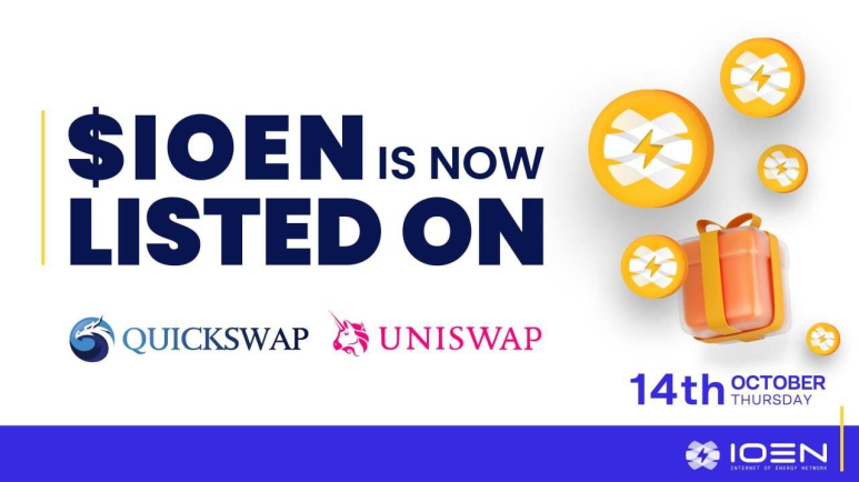 IOEN이 14일에 유니스왑과 퀵스왑에 상장했습니다.