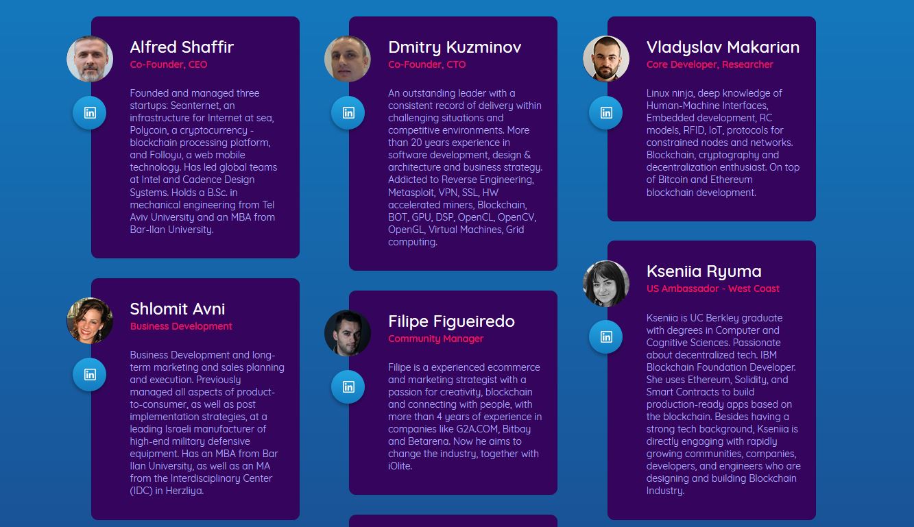 The team at iOlite exercise an impressive collective array of skills and expertise, and combined have decades of relevant experience in many areas crucial to their vision. For instance, their CEO Alfred Shaffir is a serial tech entrepreneur and CTO Dmitry Kuzminov alone harnesses over 20 years of experience in software development, design & architecture and business strategy.