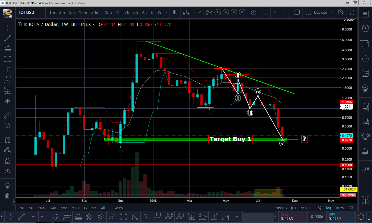 Don't try to catch IOTA as it has continued to make a lower low and a lower high since december last year, as you can see on the weekly chart.