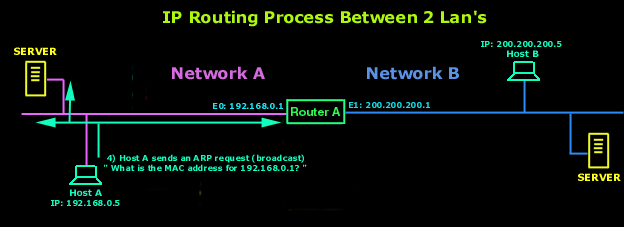 Now, we are going to describe step by step what happens when Host A (Network A) wants to communicate with Host B (Network B) which is on a different network.