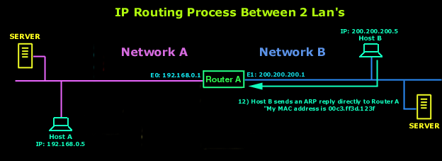 - Host B responds with the hardware address of its network interface card with an ARP reply. The router's E1 interface now has everything it needs to send the packet to the final destination.