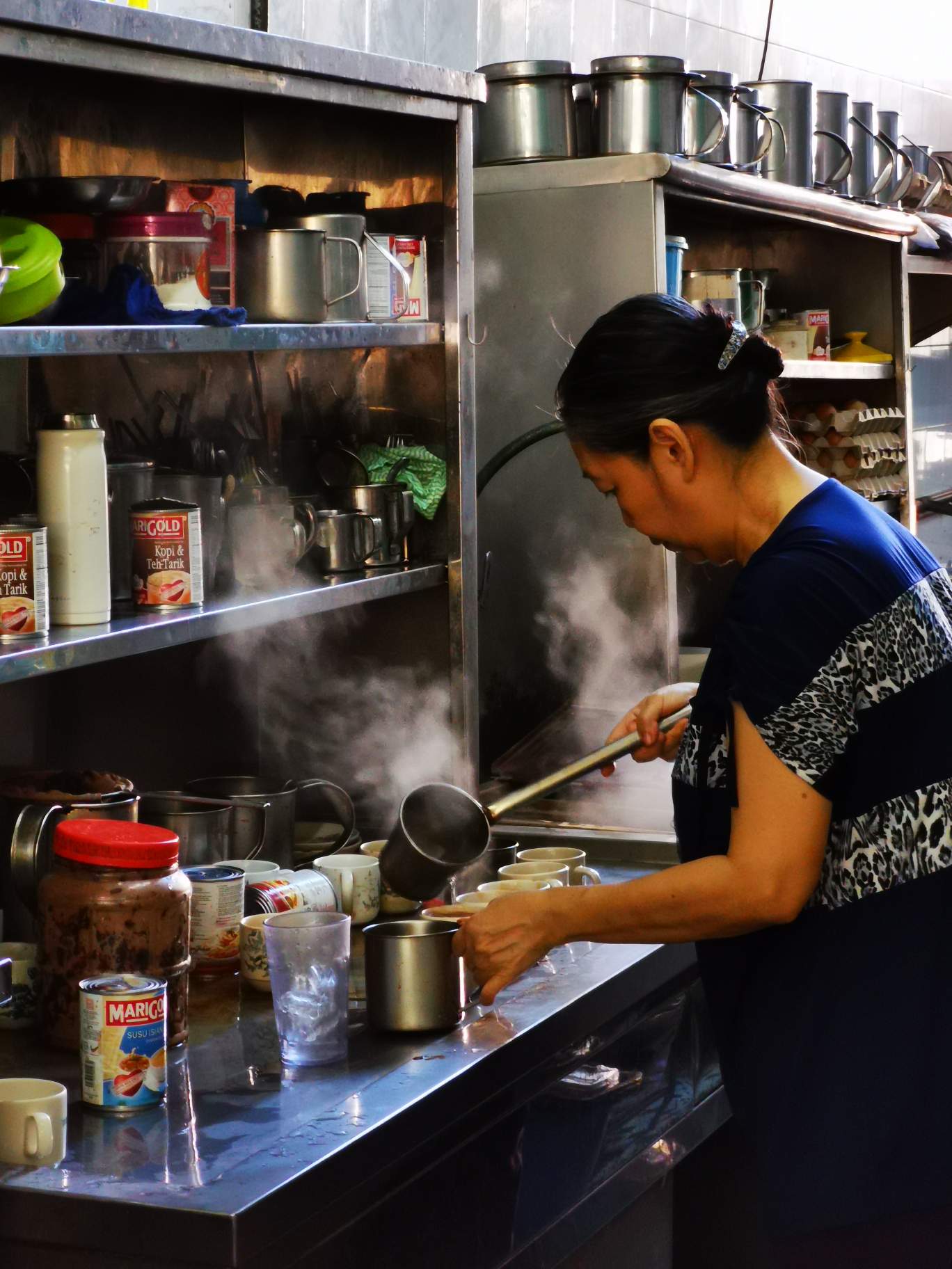 This lady makes the famous white coffee in ipoh old town. Perfection in every cup