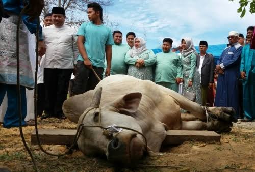 The sacrifice of beef or goat is then divided into three portions. The first portion is distributed to family members who have sacrificial animals. The second portion, given to relatives or relatives, and the third portion is distributed to families who can not afford to buy sacrificial animals.