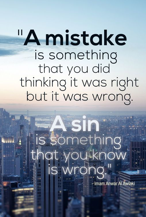 ..A mistake is something that you did thinking it was right but it was wrong. A sin is something that you know is wrong. | Imam Anwar Al Awlaki..