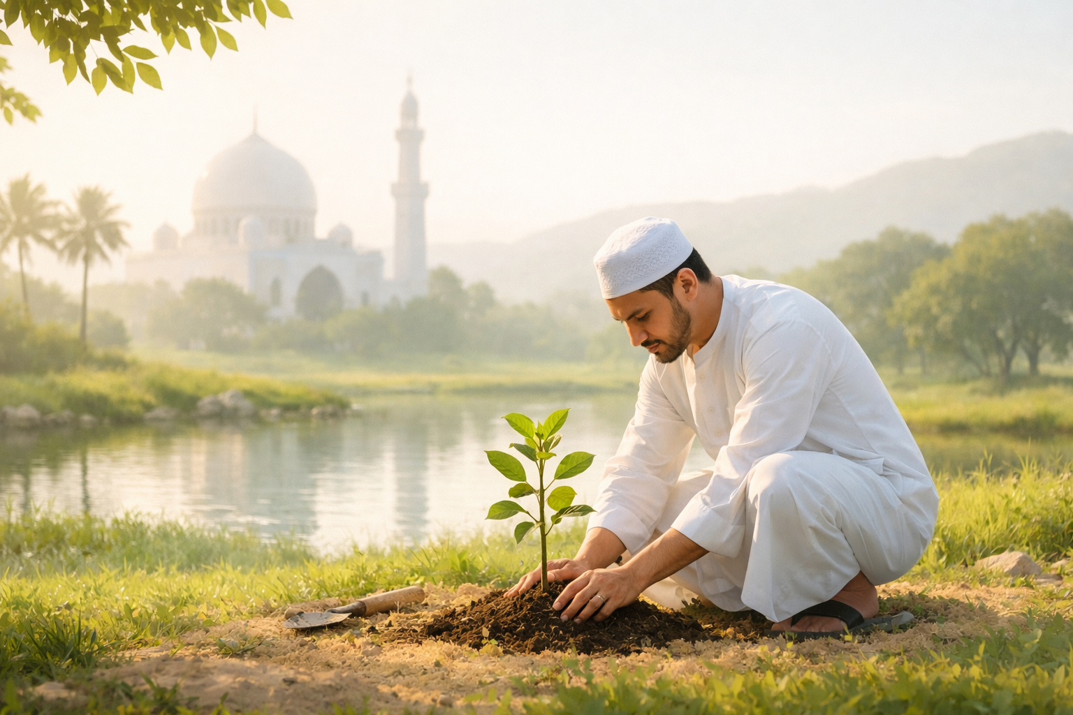Planting trees is encouraged in Islam. A tree that benefits people or animals becomes ongoing charity. Small environmental actions can bring continuous rewards.