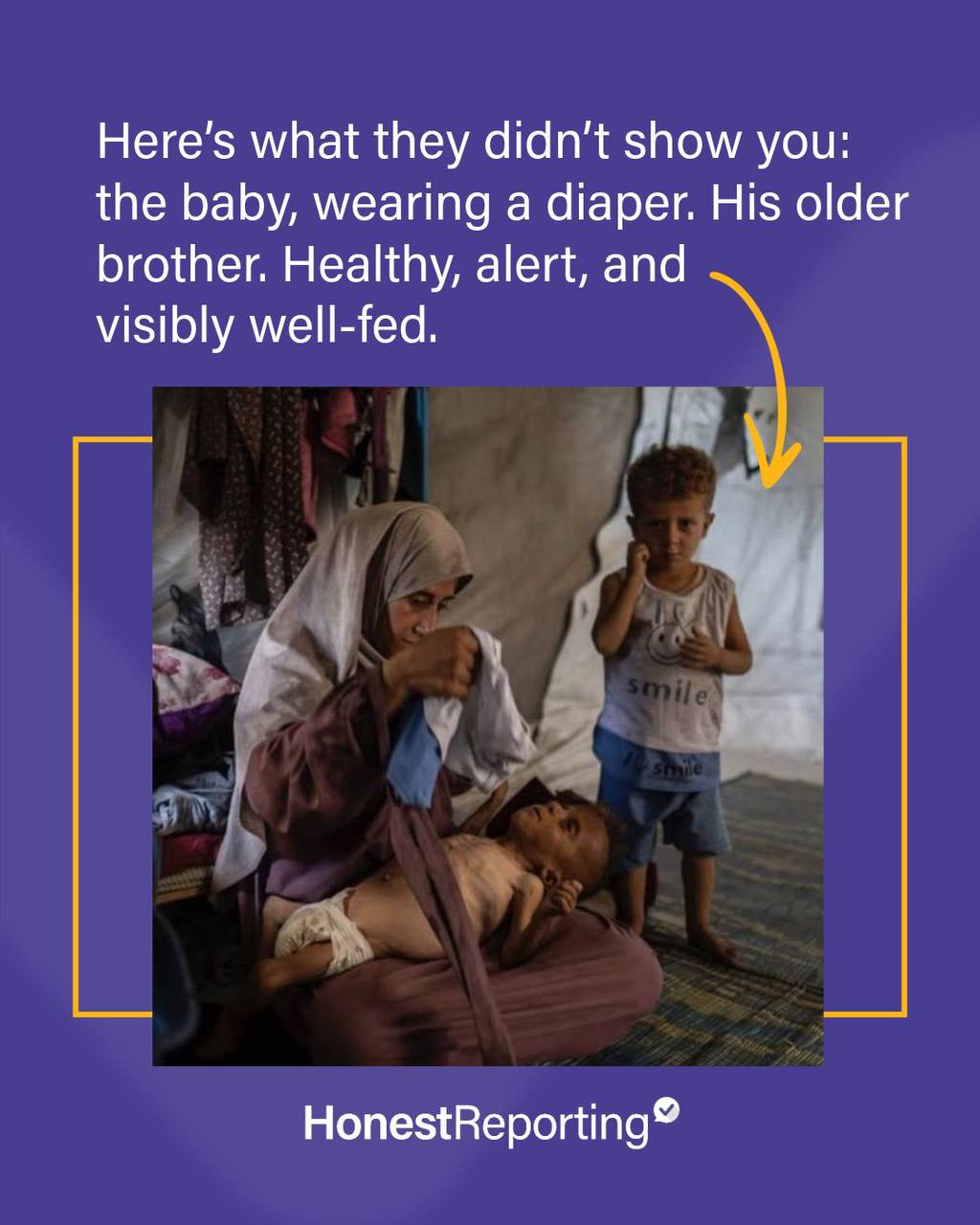 "Do you see this Gazan boy? He starred in Hamas’s “starvation” campaign and has appeared on newspaper covers around the world… but what’s the truth? This boy’s name is Osama al-Raqab, and he suffers from a disease called Cystic Fibrosis (CF) — that’s why he looks like this, not because of starvation. And not only that — Israel approved his transfer for medical treatment in Italy. In short: fake news and propaganda at the expense of a sick child… and the world keeps falling for this lie!!!"