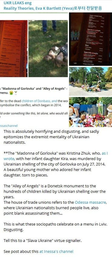 죽은사람들을 음식 메뉴 이름으로 써서 조롱을 하는게 현재의 서부 우크라이나임