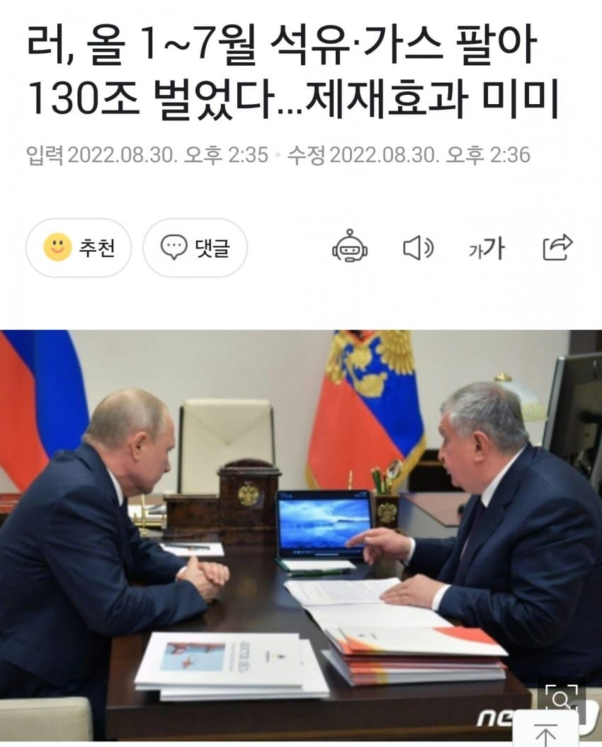 러, 올 1~7월 석유·가스 팔아 130조 벌었다…제재효과 미미