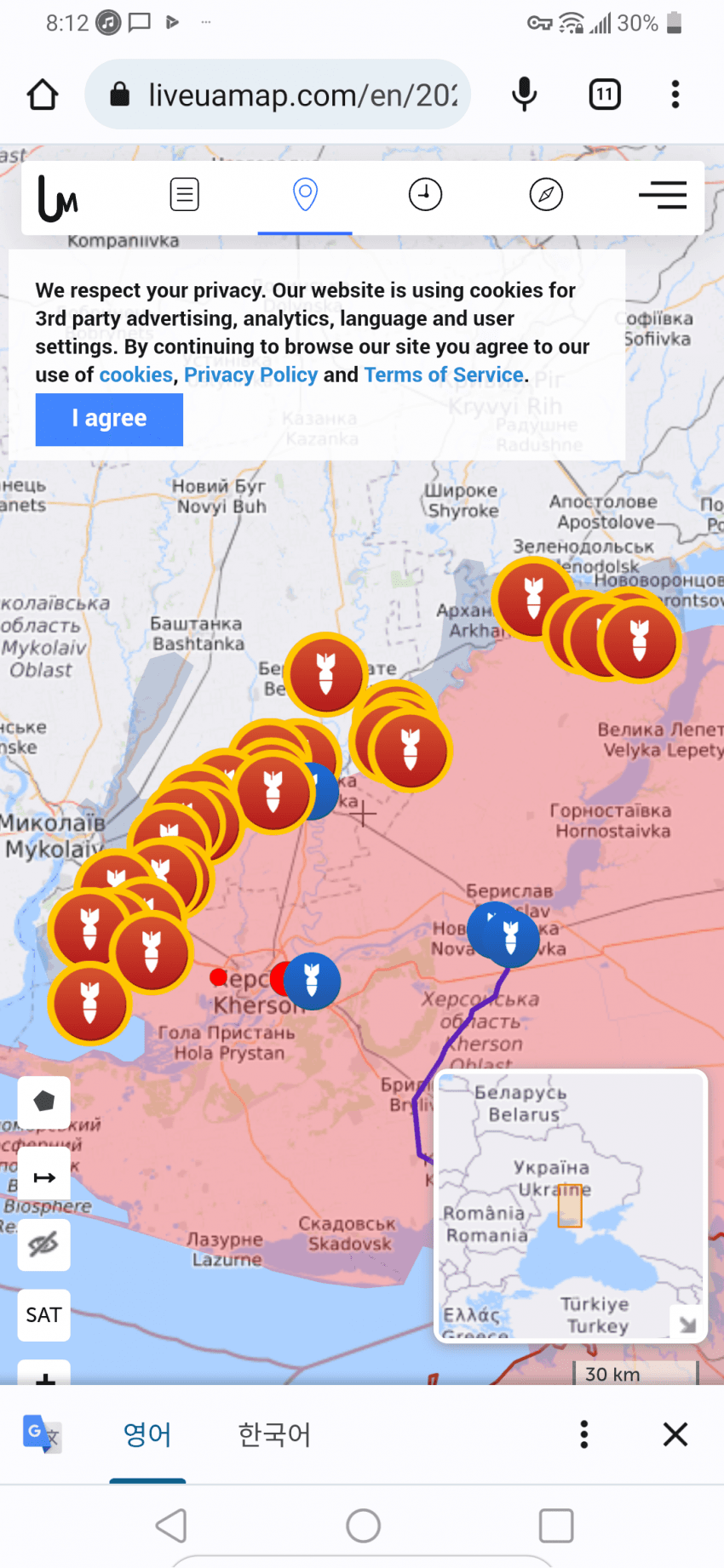 암튼 러시아는 야금야금 다시 마을과 마을 사이를 먹어들어가며 니콜라예프를 압박할 거고 러시아군 포병은 기갑이 넓혀준 전선면 으로 다가오면서 포격범위를 넓힐거고