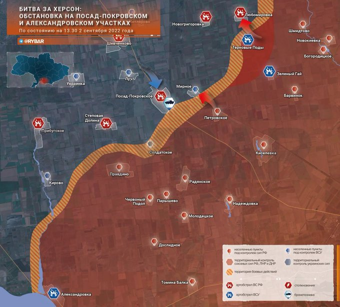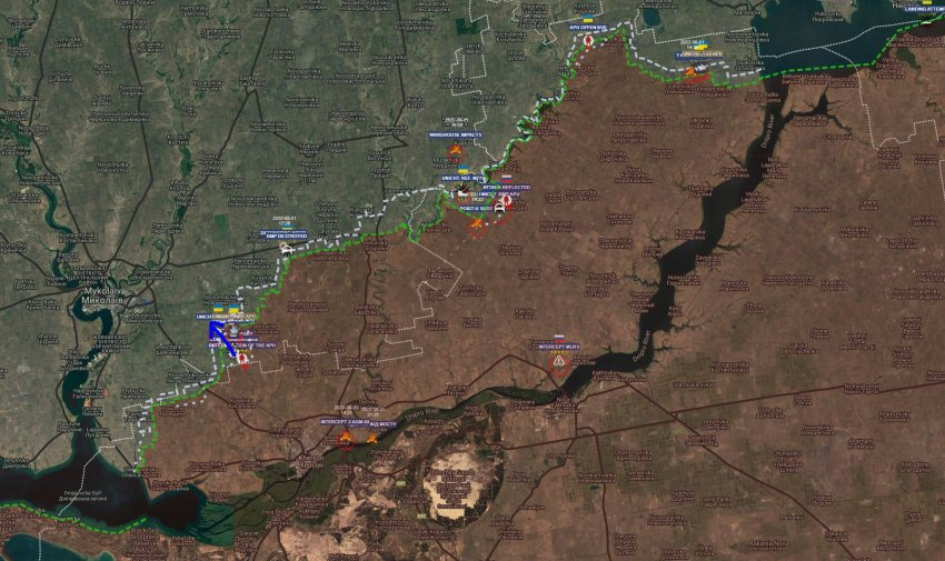 헤르손 시 방면 에서 수비하던 러시아군 기갑이 공세로 전환했고 두방향에서 치고 나가는중