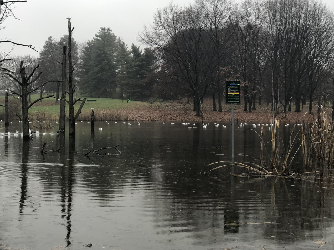 Date le condizioni meteo avverse pensavo di non incontrare quasi nessuno ed invece, una volta parcheggiata l'auto, mi sono addentrato nel parco ed mi sono imbattuto in frotte di gente incuranti della pioggia battente e vestita con tute dai colori sgargianti che correvano per i viali degli 83 ettari del parco.