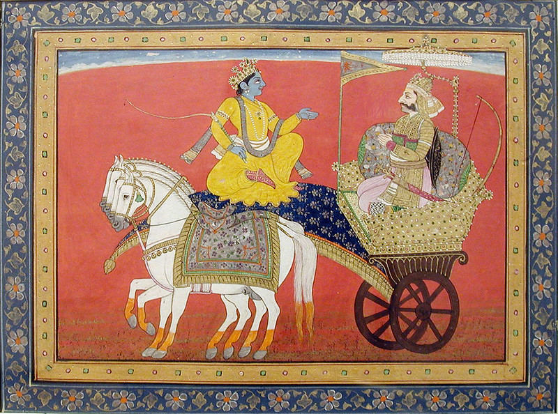 Dialogue between Krishna and Arjuna on the battlefield of Kurukshetra