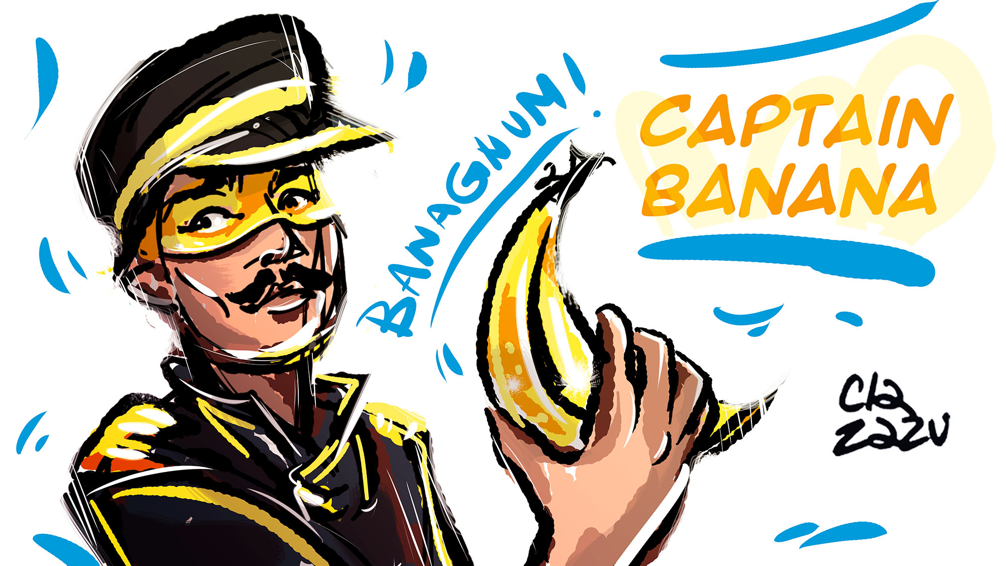 Facendomi spazio tra uno scatolone e l’altro, appoggio il portatile sulla valigia e comincio a rovistare anche lì tra i post della sua pagina.Wow... una scoperta decisamente esplosiva! L’ironia e l’acutezza sono una le frizzantine caratteristiche dei suoi articoli. Così decisi di realizzare l’illustrazione del mitico Capitan Banana e la sua Banagnum!