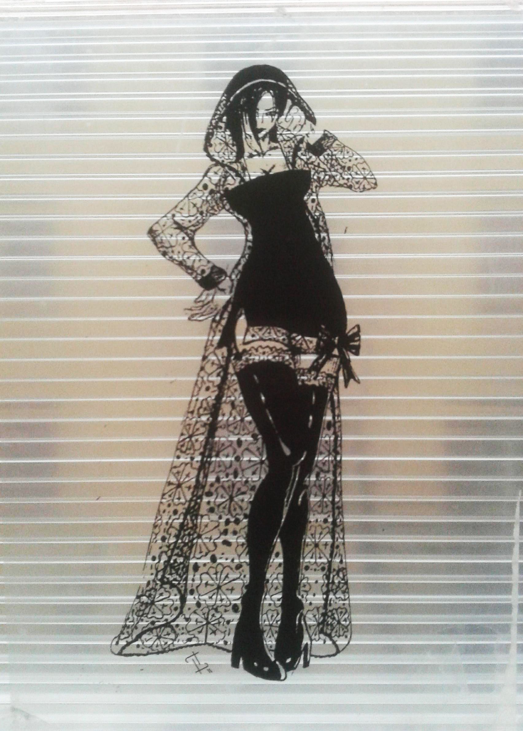 Immagine riportata tramite stampa in bianco e nero su un foglio di plastica trasparente in formato A4, che avvolte è anche uno dei primi passi per un lavoro di serigrafia.