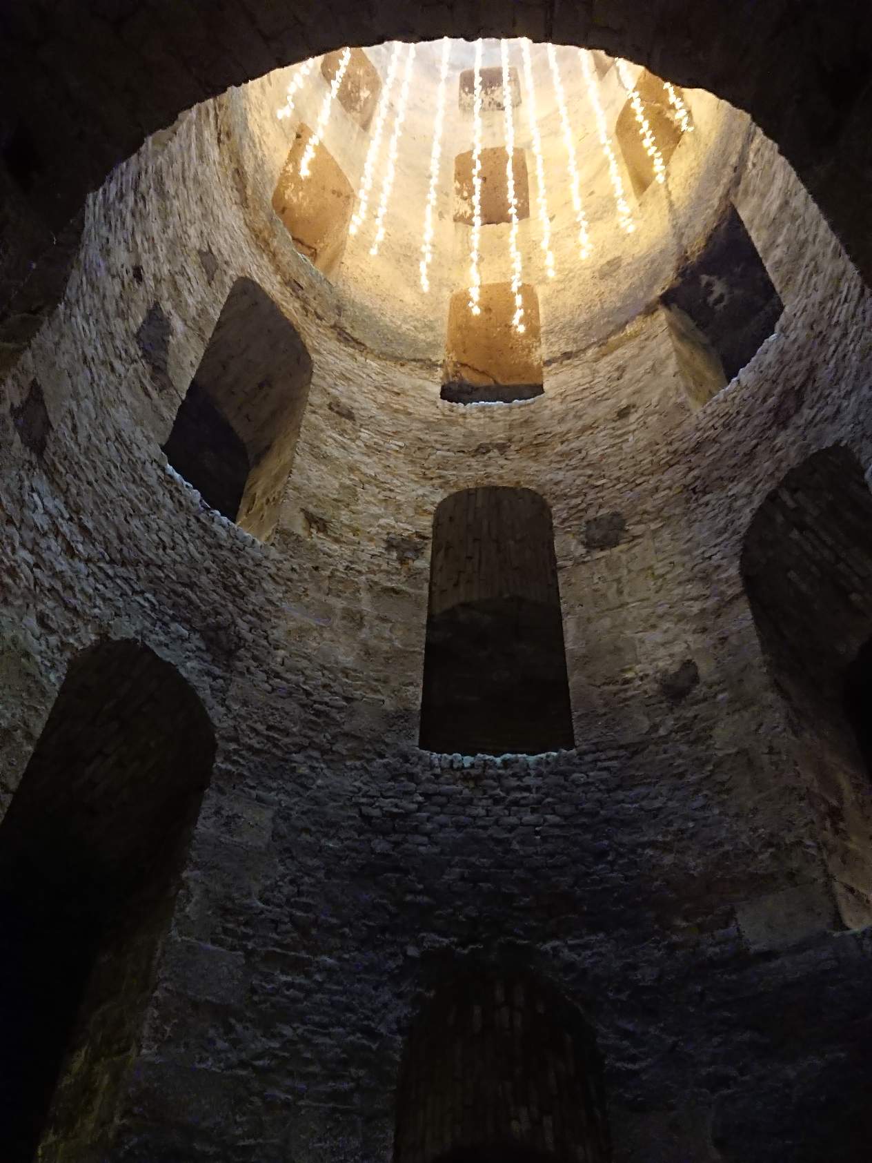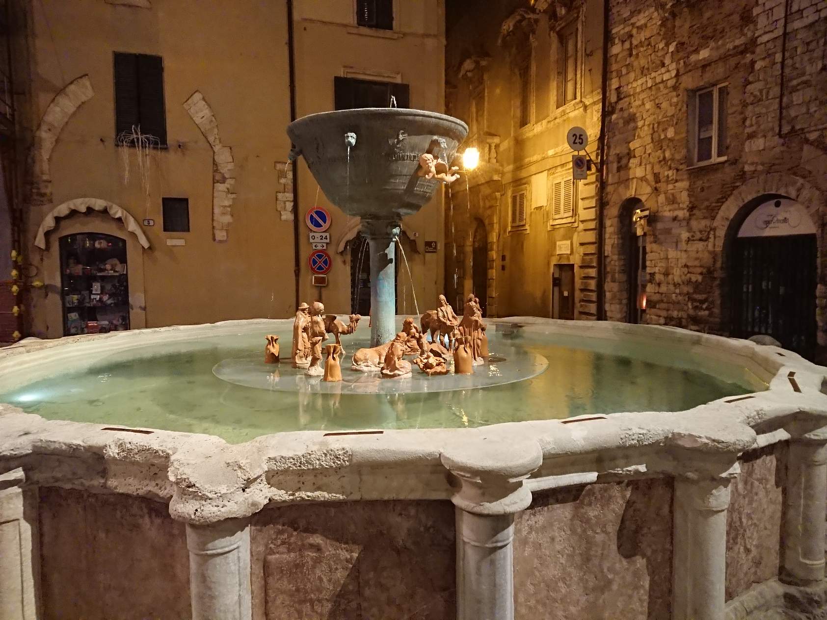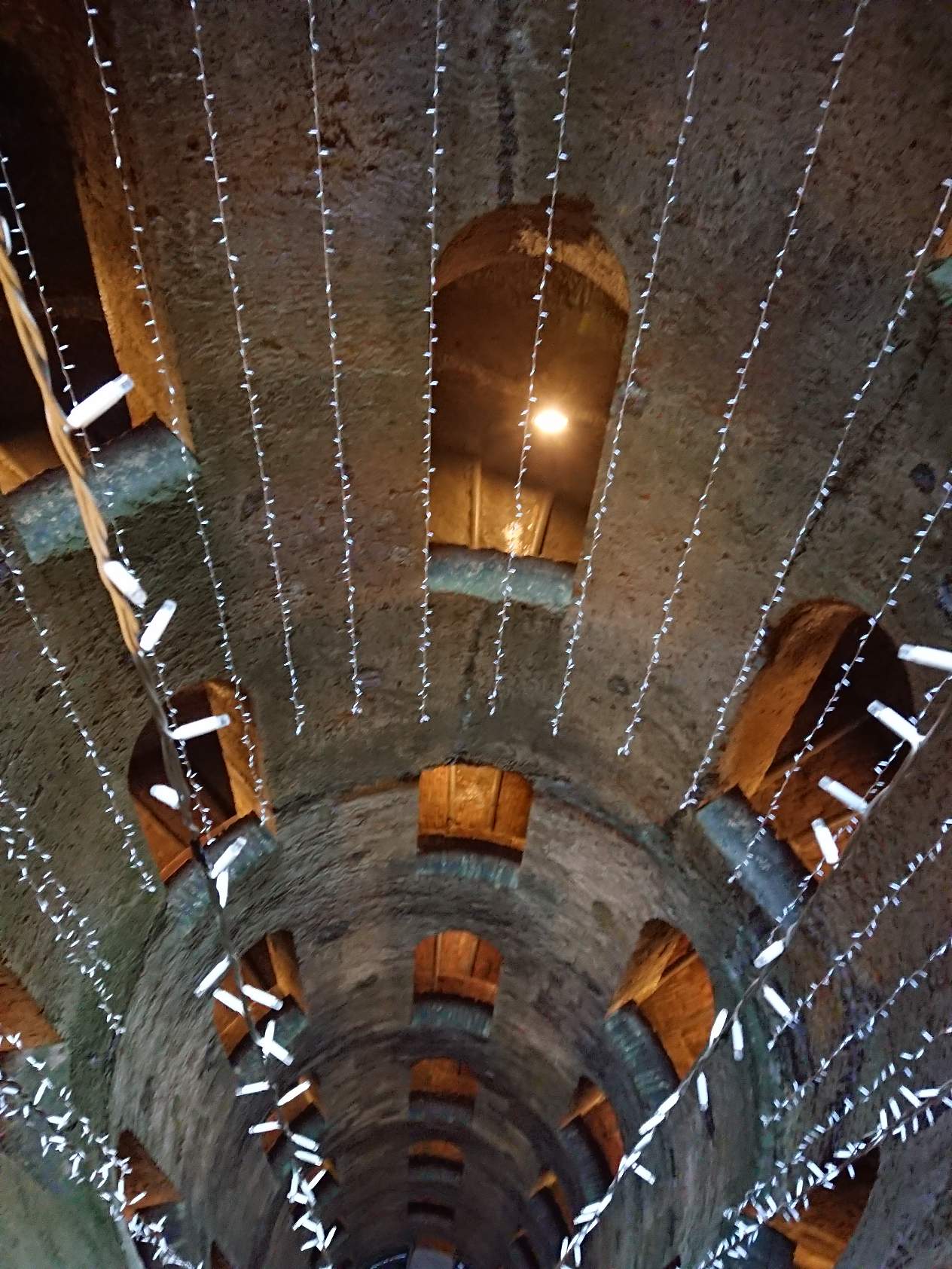 Perché perfetto? Perché si scende da una scala a spirale (248 scalini in discesa) e si risale da un'identica scala (249 scalini in salita) che non si incrocia mai con l'altra. Fu progettato così per fare in modo che le bestie, scendendo per prendere l'acqua, non si incrociassero mai con quelle cariche di acqua che salivano verso l'alto. Geniale, direi! P.S. Ovviamente le luci natalizie si sono accese quando ormai eravamo scesi più in basso 😠.