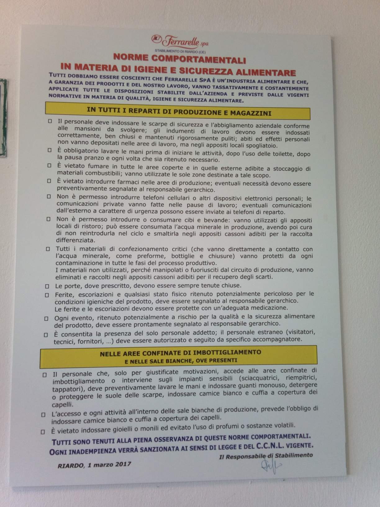 Purtroppo non posso postare video o foto dell'interno, probabilmente non ho neanche l'autorizzazione a postare questa foto ma tutto sommato non mostra nient'altro che l'ingresso ad un piccola parte della linea produttiva.