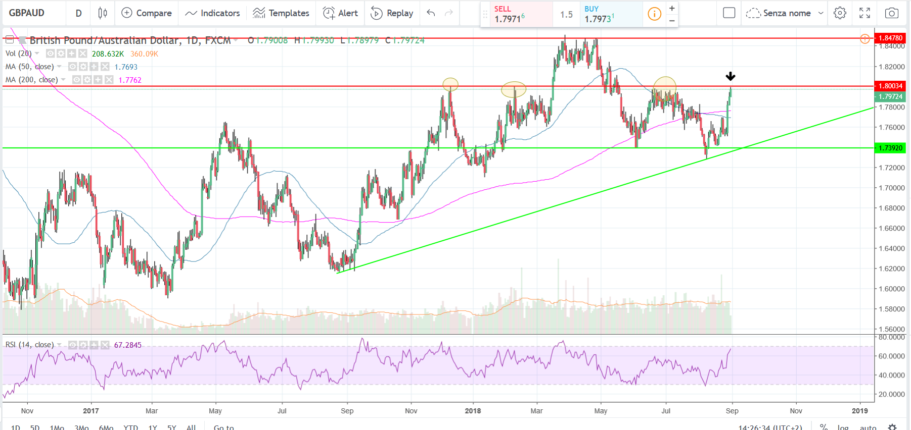 Il trade di oggi si riferisce al cambio GBP/AUD ,sterlina inglese e dollaro australiano.