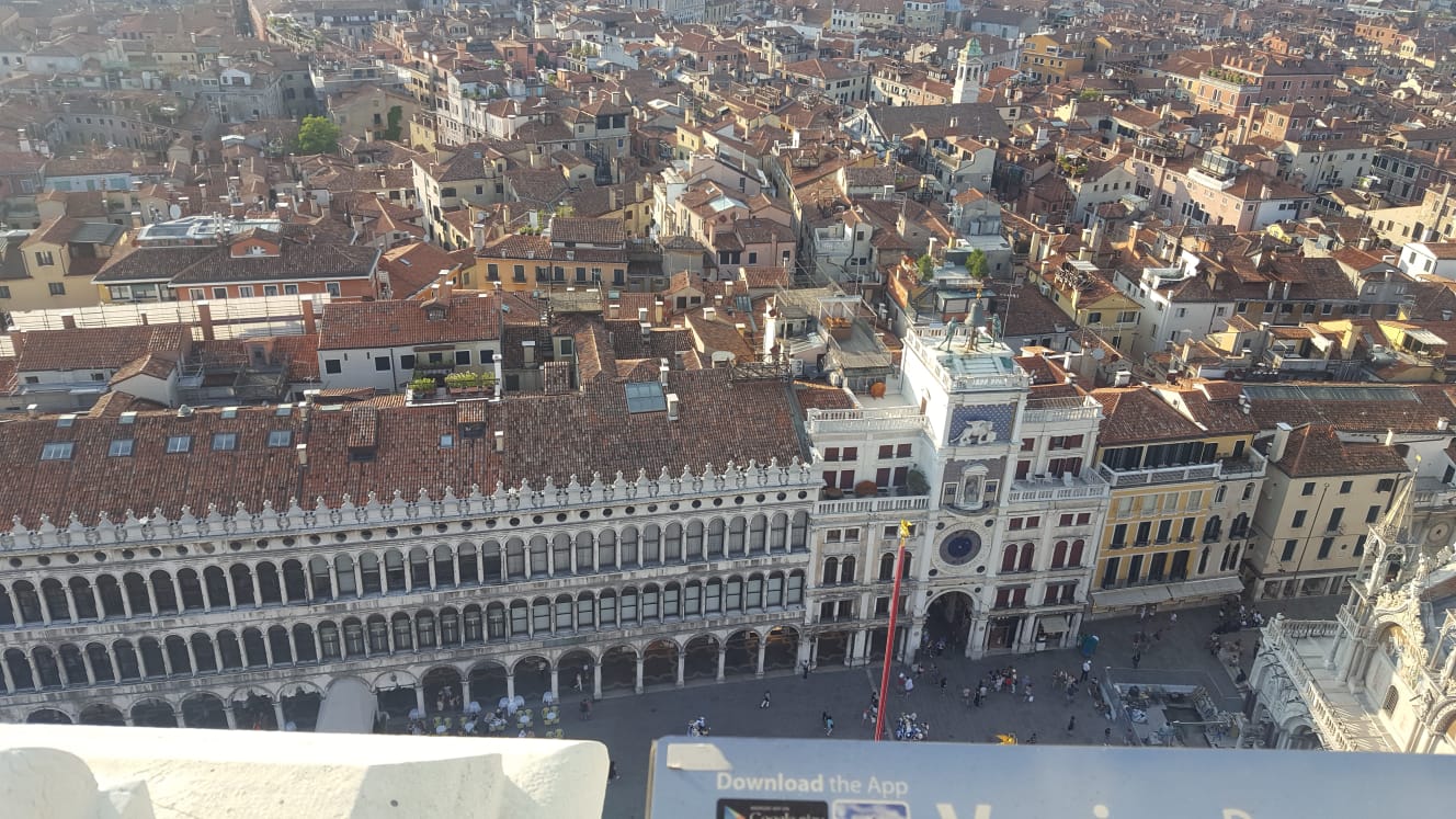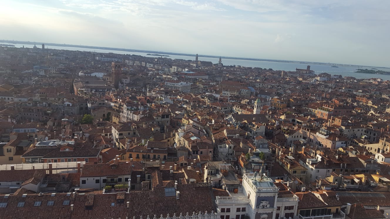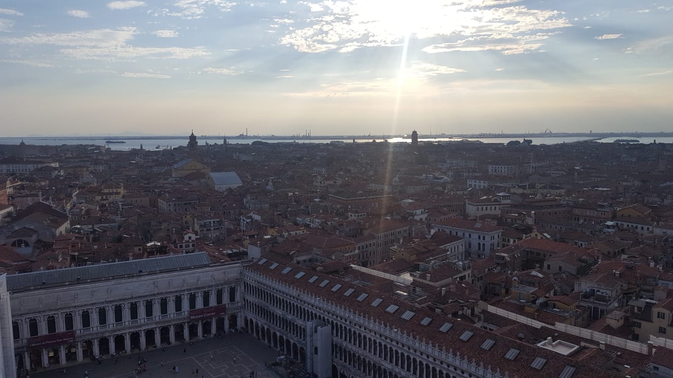 Sono salita sul famoso campanile di Piazza San Marco, e scattato delle foto dall'alto, riprendendo la piazza stessa, la città, e le varie isole.