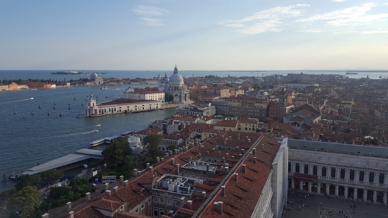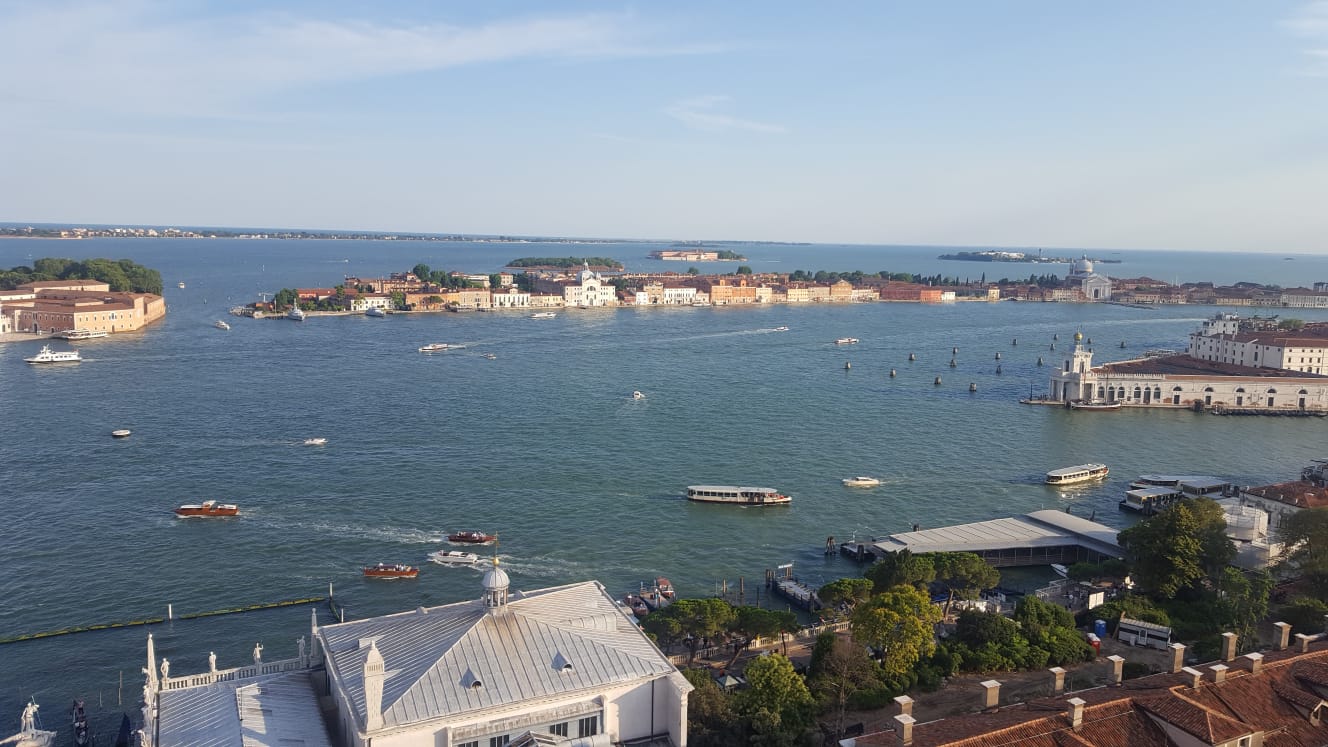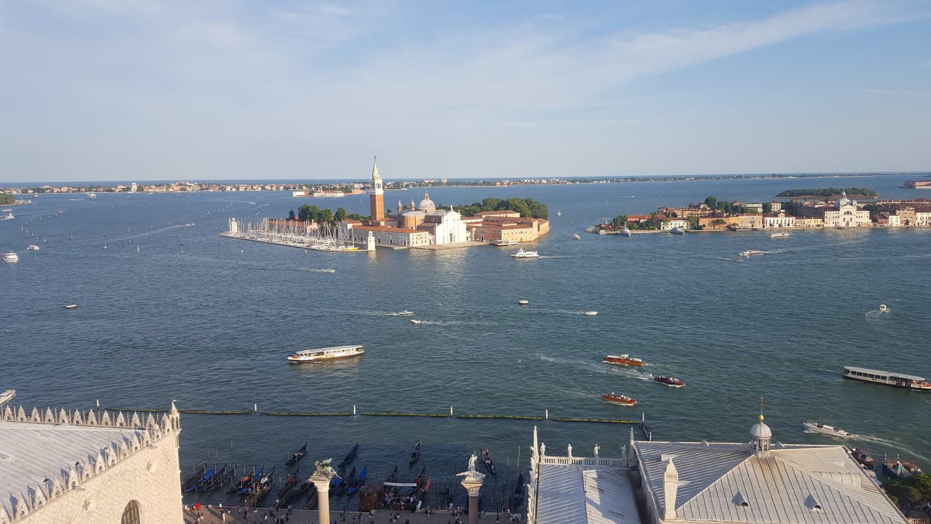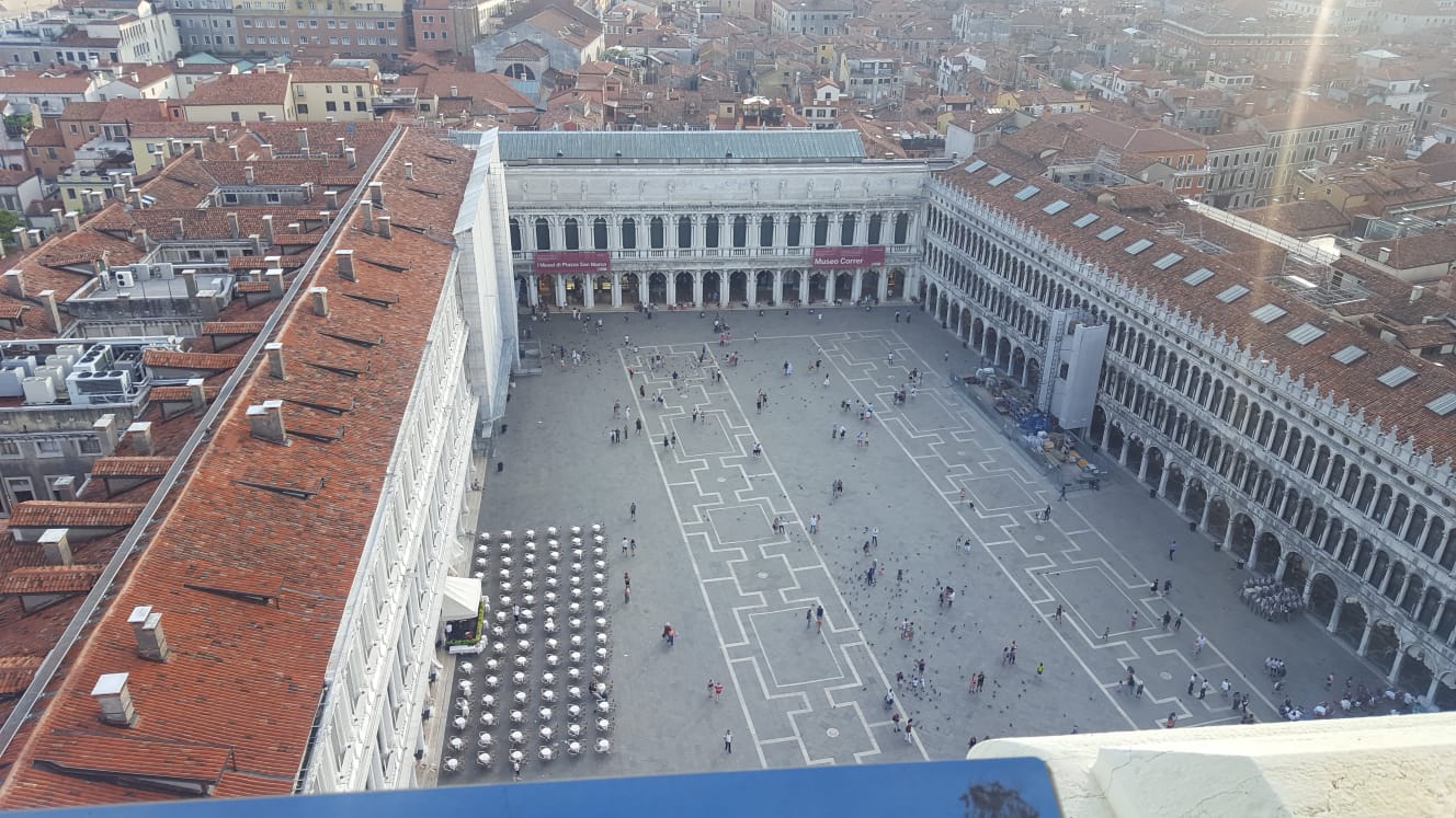 Sono salita sul famoso campanile di Piazza San Marco, e scattato delle foto dall'alto, riprendendo la piazza stessa, la città, e le varie isole.
