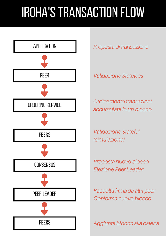 Il framework Iroha si avvicina ad essere rilasciato nella versione 1.0. Iroha offrirà una serie di funziolità tra cui: la gestione di assets complessi, la gestione di account utenti, una tassonomia basata su “sub-chains”, un sistema di gestione di permessi degli utenti. Lo storage level è composto da tre diversi componenti: Redis (block index), Flat files (block store) e PostgreSQL (world state view).