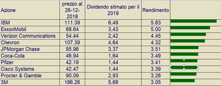 Di seguito le migliori 10 azioni per rendimento atteso del DOW JONES