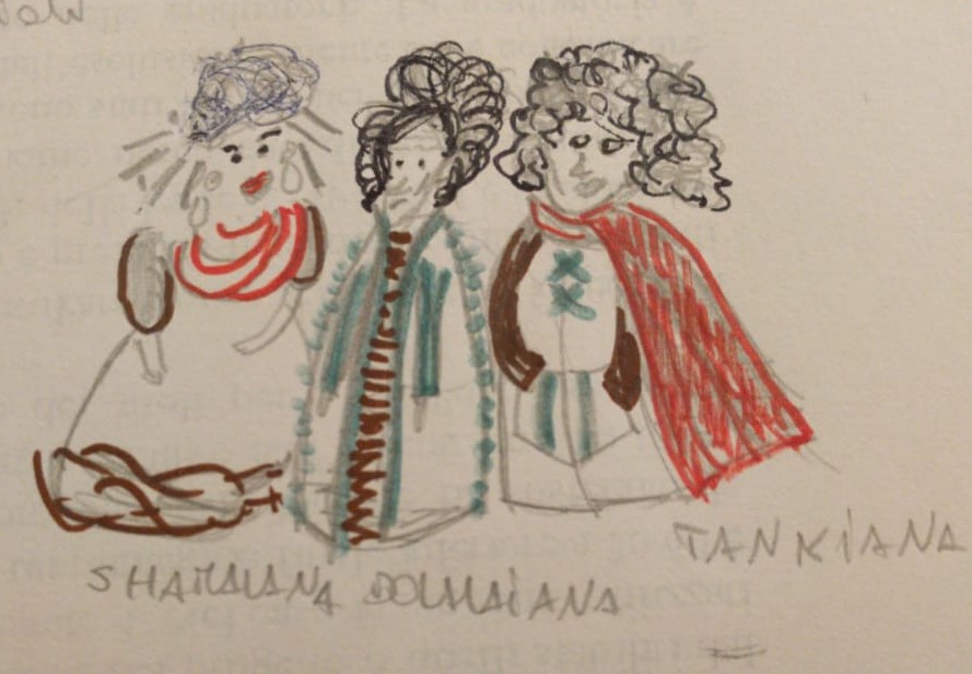 Le tre sagge Shamalana, Dolmayana e Tankiana in uno schizzo della giocatrice Mia
