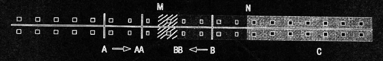 Come si può vedere dal posizionamento dei punti A e B, B coprirà una più vasta area del mercato: la sua zona di competenza va dall’estrema destra fino al punto M che cade esattamente al centro tra i punti A e B. L’area della panetteria A va dall’estremità sinistra al punto M. Per aumentare le vendite il panettiere A si sposterà nel punto AA guadagnando , così, nuove zone di mercato. Il panettiere B a sua volta sposterà il suo punto vendita nel punto BB riguadagnando la parte di mercato precedentemente perduta. Entrambe le attività, spostandosi verso il centro, cercano di ottimizzare la loro capacità di vendita.