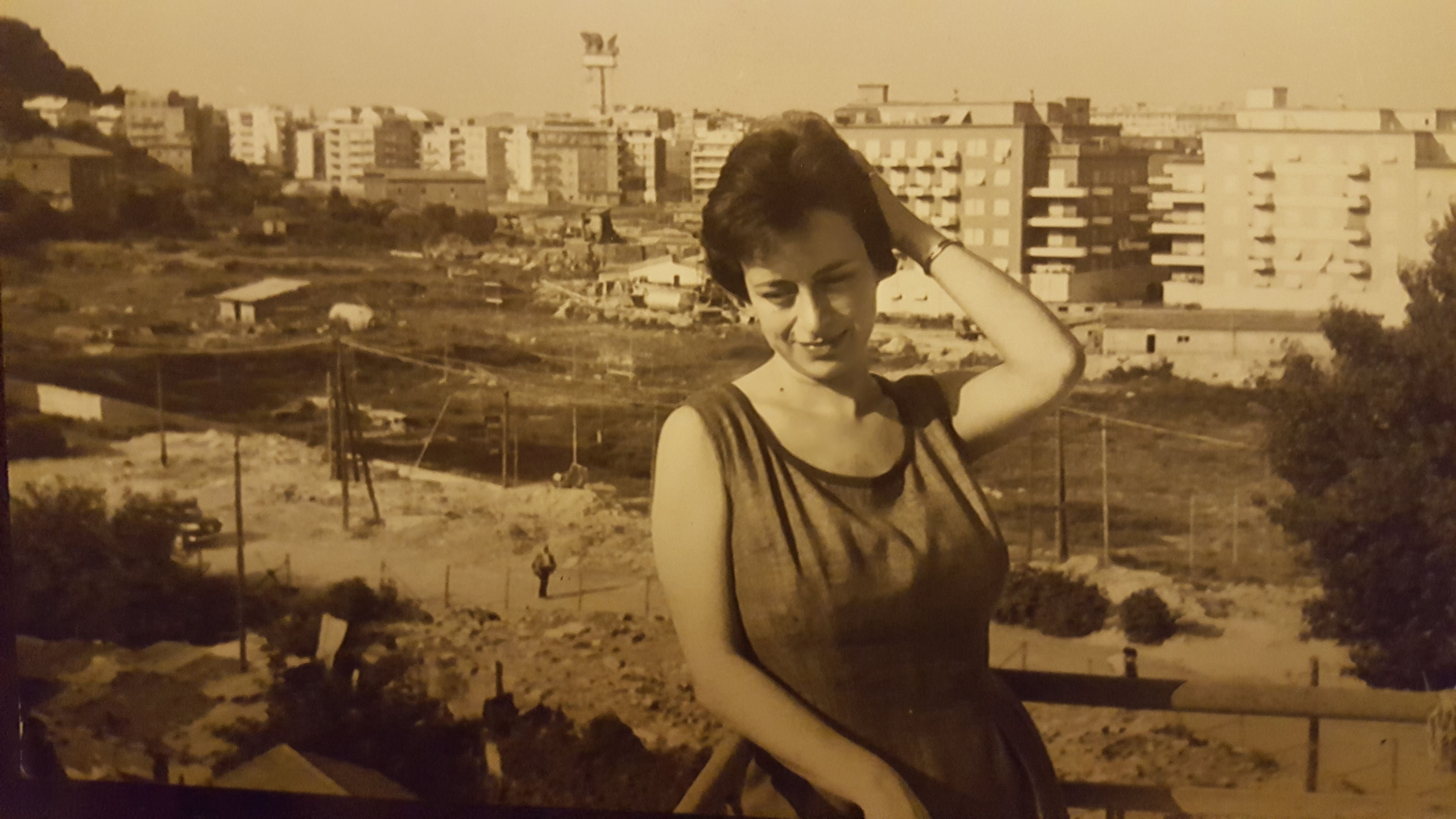 O una giovane donna che si mette in posa come ha visto fare alle dive del cinema, e dietro di lei lo skyline di una città che si prepara ad accogliere gli impiegati della nuova generazione dell'amministrazione centrale della Repubblica Italiana.