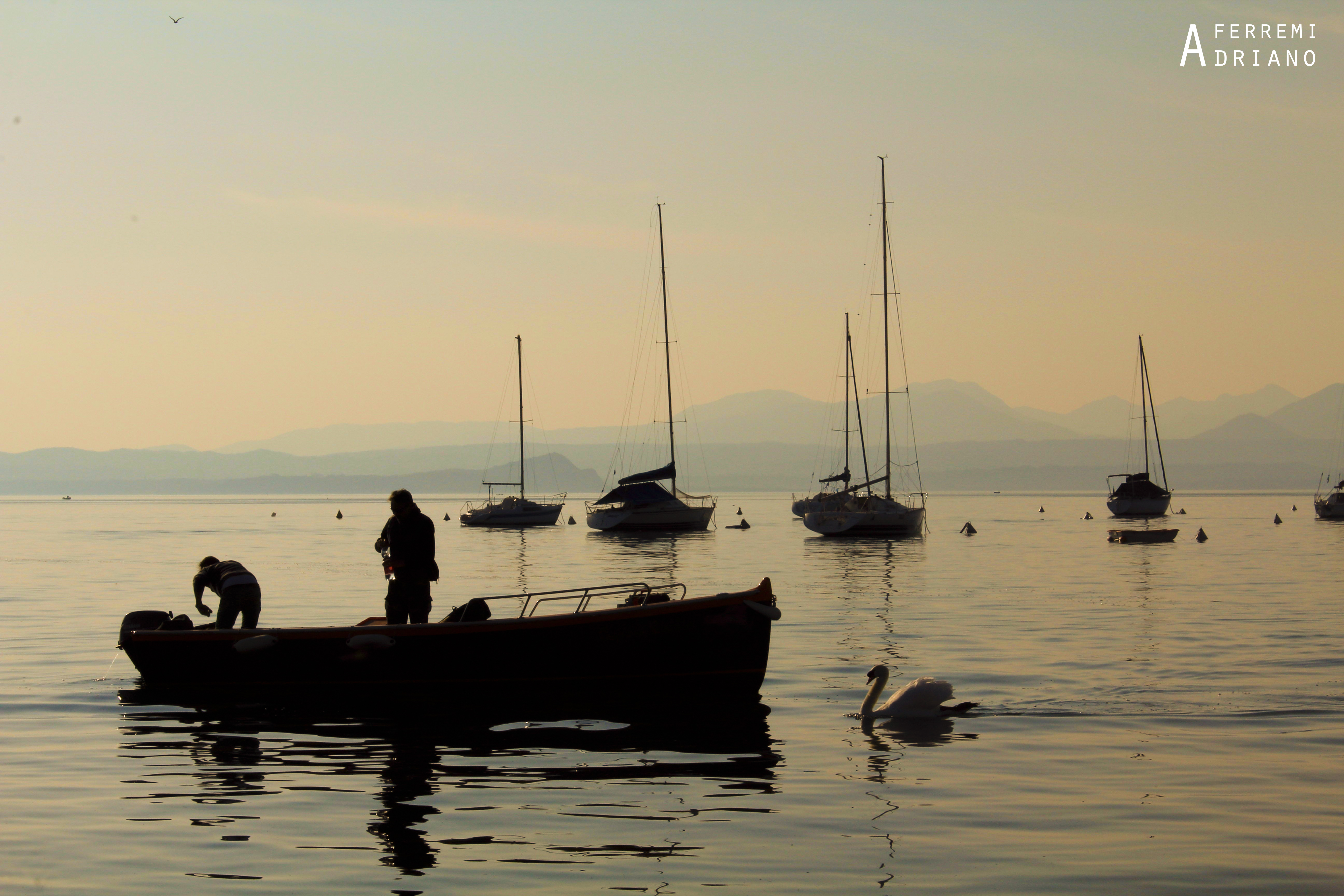 Delle località lacustri amiamo il clima di tranquillità che si vive nelle ultime ore della giornata, quando il sole si avvicina alla linea dell'orizzonte e le ombre si allungano.