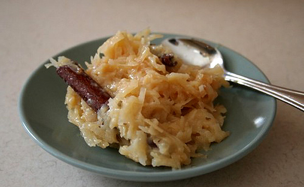 Preparare prima l'estratto di cocco dell'acqua e riservarlo, sbucciare e grattugiare il cocco sul lato sottile del rallo, riservare. Metti da parte l'acqua con lo zucchero, lascia bollire e quando inizia a addensarsi spegni il fuoco, aggiungi la noce di cocco e mescola costantemente per cinque minuti.