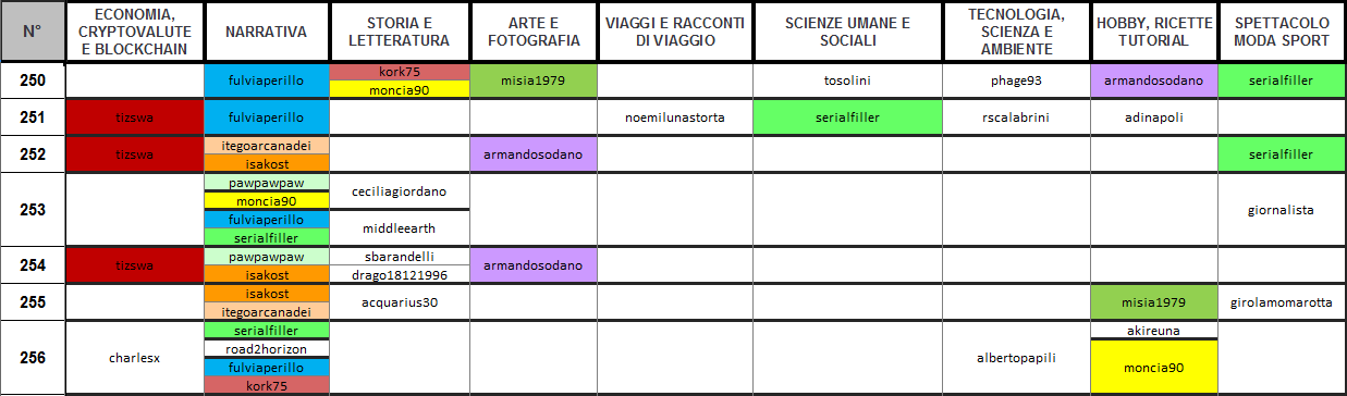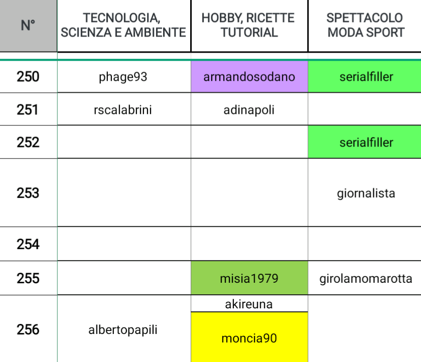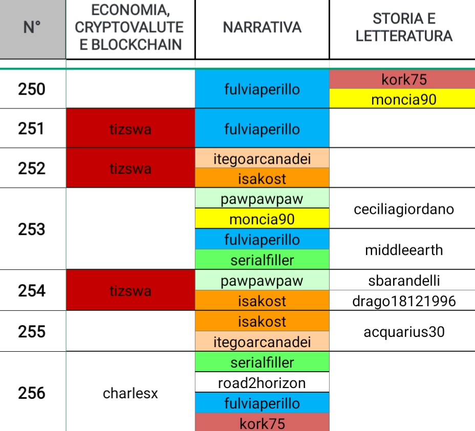 @fulviaperillo domina la scena con quattro posizionamenti, a seguire @isakost con tre posizionamenti, @itegoarcanadei, @pawpawpaw e @serialfiller con due vittorie ciascuno, quest'ultimo si aggiudica la vittoria anche in altre due categorie: SPETTACOLO, MODA E SPORT e SCIENZE UMANE E SOCIALI. @kork75 lo ritroviamo anche in STORIA E LETTERATURA, come possiamo vedere anche @moncia90 eccelle in questa categoria e in HOBBY, RICETTE E TUTORIAL.