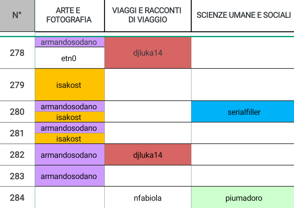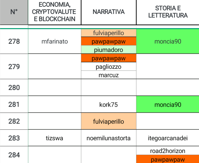 @pawpawpaw e @fulviaperillo si aggiudicano due vittorie a testa; inoltre @pawpawpaw prende posto anche in STORIA E LETTERATURA, @piumadoro oltre che eccellere in questa categoria la ritroviamo più avanti in SCIENZE UMANE E SOCIALI.