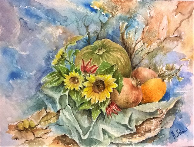 Autumn dance - watercolor