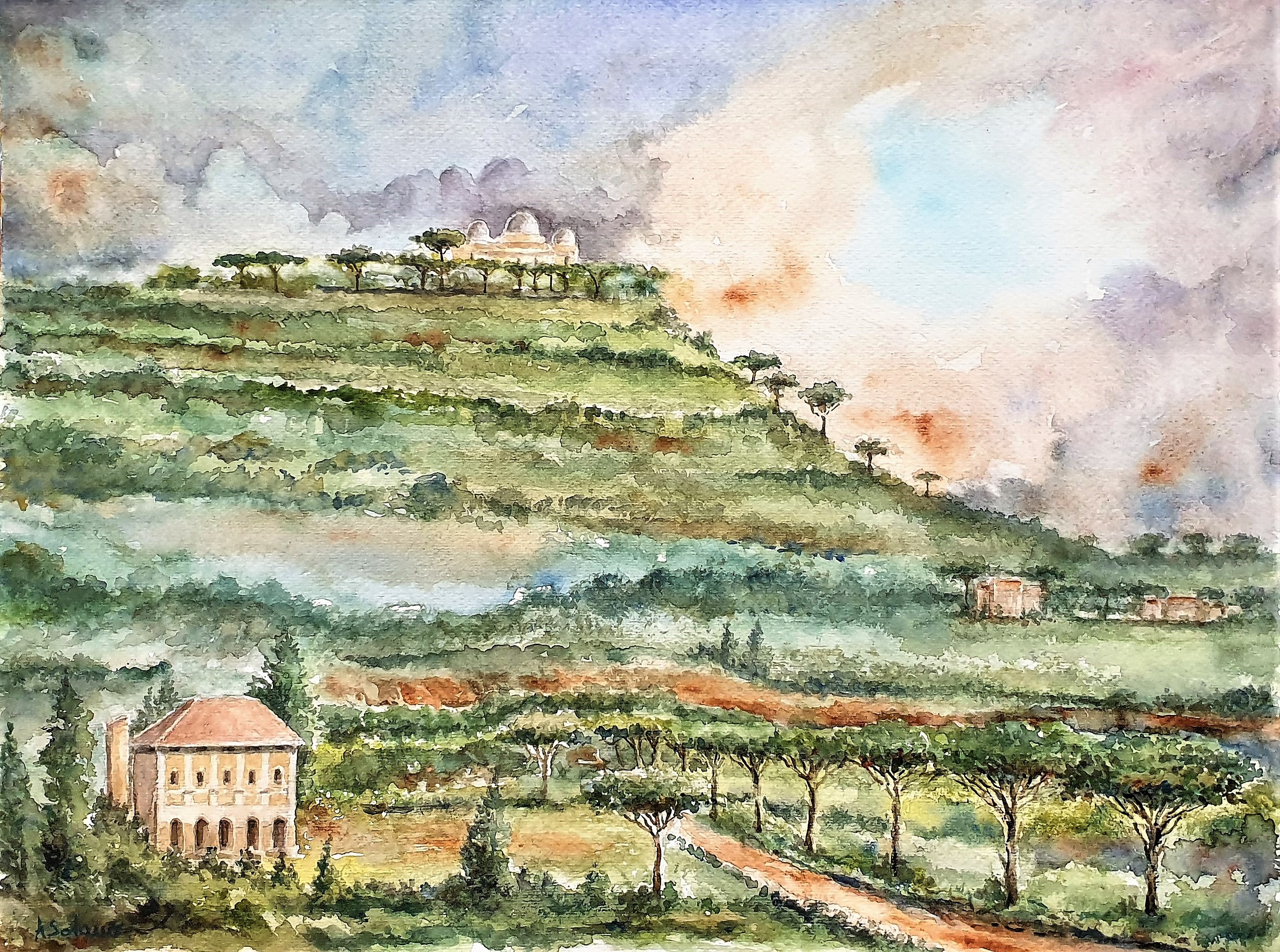 The Hill of Rome - watercolor - 5 steps